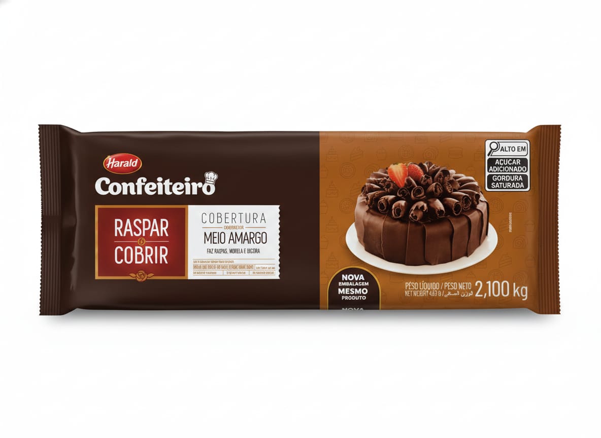 Raspar E Cobrir Meio Amargo Barra 2,1kg Harald